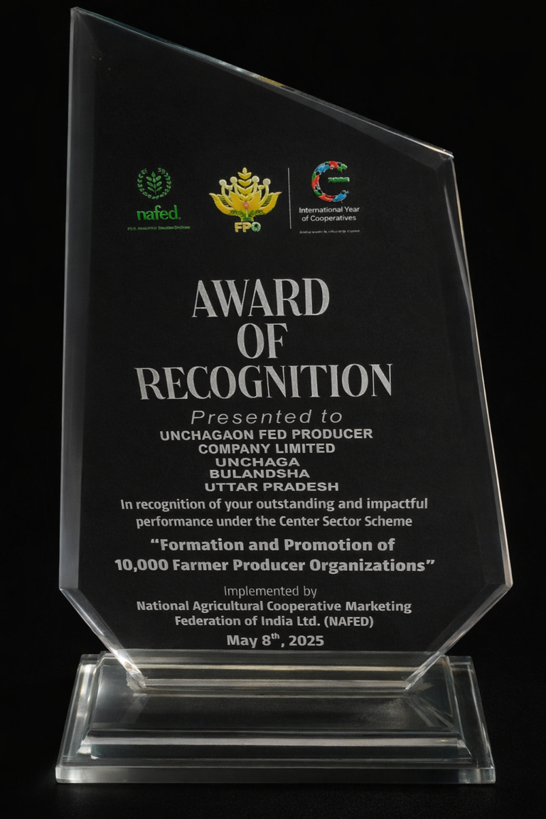 Unchagaon Fed Producer Company Limited, Bulandshahr district, Uttar Pradesh, has been honored with the “Best Performing FPO” award by NAFED in recognition of its exemplary performance under the 10,000 FPO Scheme. The award acknowledges the FPO’s strong farmer engagement, effective institutional management, and impactful initiatives in strengthening agri-business activities at the grassroots level.